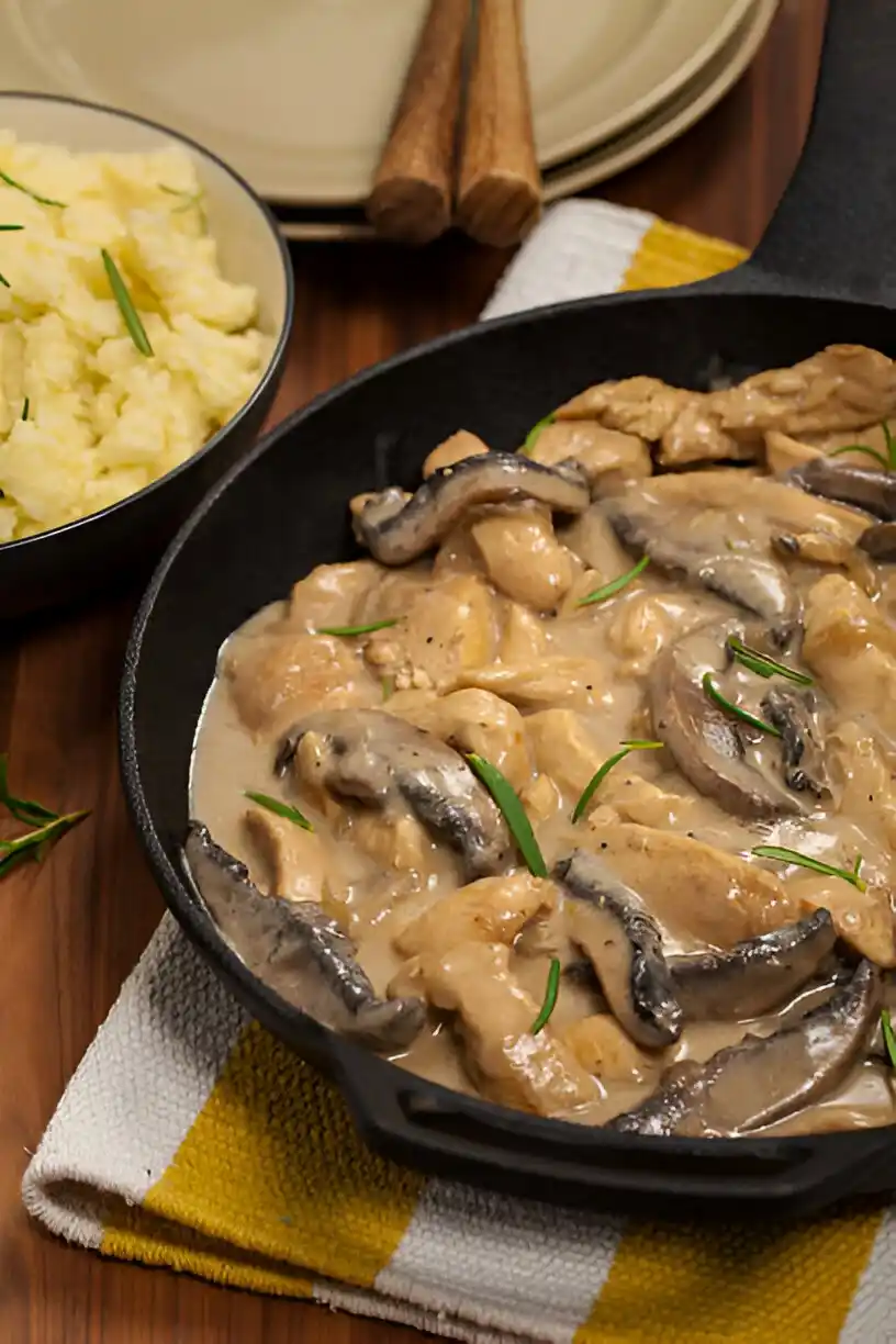 Stroganoff de poulet facile – morceaux de poulet dorés à la poêle avec des champignons savoureux, le tout cuit dans une sauce crémeuse et ...