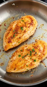 - Poêle bien chaude : assurez-vous que votre poêle soit bien chaude avant d’ajouter le poulet. Vous voulez que le poulet cuise rapidement à très haute température pour rester juteux et tendre, plutôt que de cuire longtemps et devenir sec et dur.